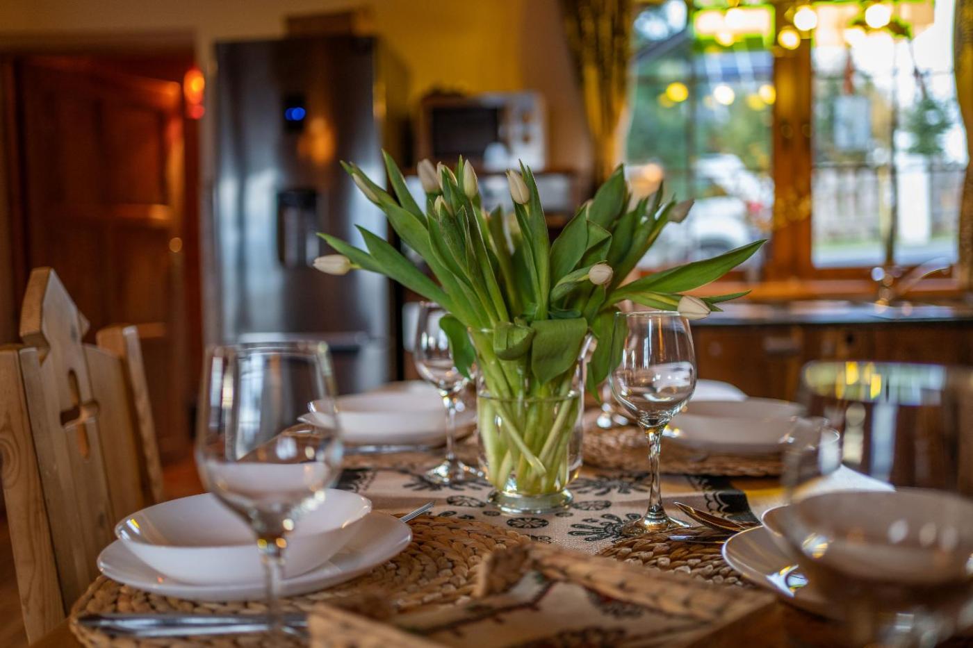 Willa typu Deluxe. The fireplace is a top feature of this villa. Boasting a private entrance, this villa comes with 2 living rooms, 5 separate bedrooms and 2 bathrooms with a bath and a shower. Guests can make meals in the kitchen that features a stovetop, kitchenware, an oven and a tea and coffee maker. Featuring a terrace with mountain views, this villa also features a washing machine and a flat-screen TV. The unit has 7 beds. Willa - 12 osobowy. Powierzchnia pokoju ok.: 90 mkw. ;