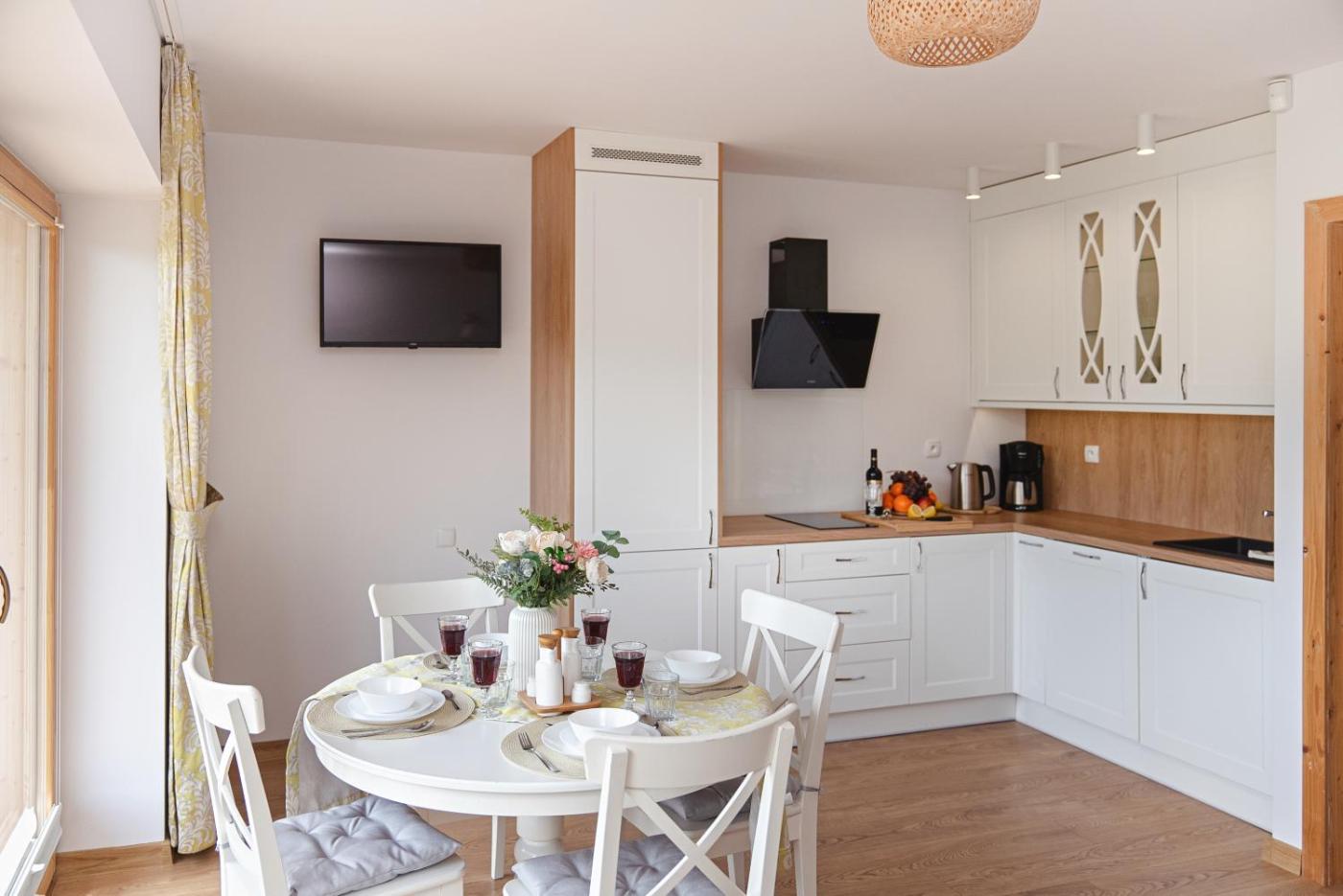 Domek z 2 sypialniami. Boasting a private entrance, this spacious chalet also comes with 1 living room, 2 separate bedrooms and 2 bathrooms with a shower. Guests will find a stovetop, a refrigerator, a dishwasher and kitchenware in the well-fitted kitchenette. The chalet also includes a barbecue. Featuring a terrace with mountain views, this chalet also features soundproof walls and a flat-screen TV with streaming services. The unit has 4 beds. Domek - 8 osobowy. Powierzchnia pokoju ok.: 74 mkw.