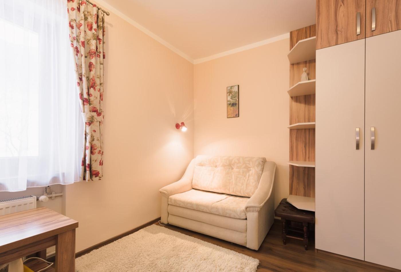 Pokój typu Standard z 2 łóżkami pojedynczymi i sofą. The twin room provides a private entrance, a wardrobe, as well as a private bathroom featuring a shower and a hairdryer. The twin room offers an electric kettle, a sofa, heating, a flat-screen TV, as well as garden views. The unit offers 3 beds. Pokój z 2 łóżkami pojedynczymi - 3 osobowy. Powierzchnia pokoju ok.: 18 mkw.